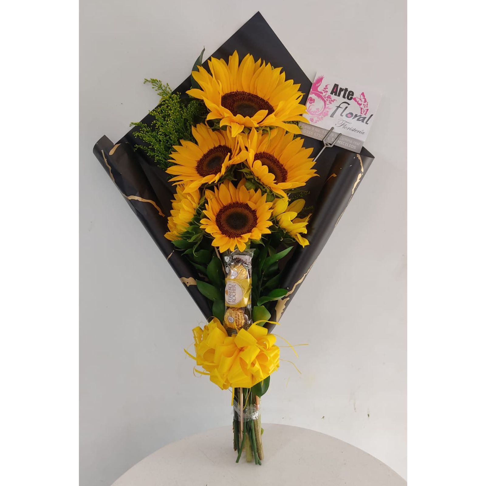 Bouquet de girasoles y chocolates ferreros – y tarjeta impresa