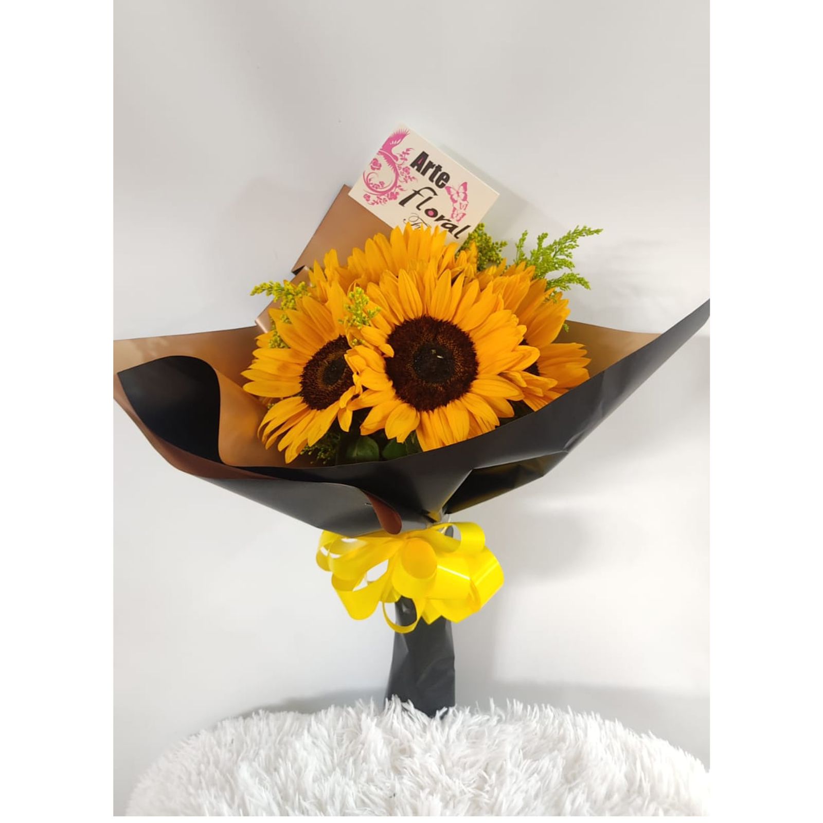 Ramo buchón de girasoles  y tarjeta impresa